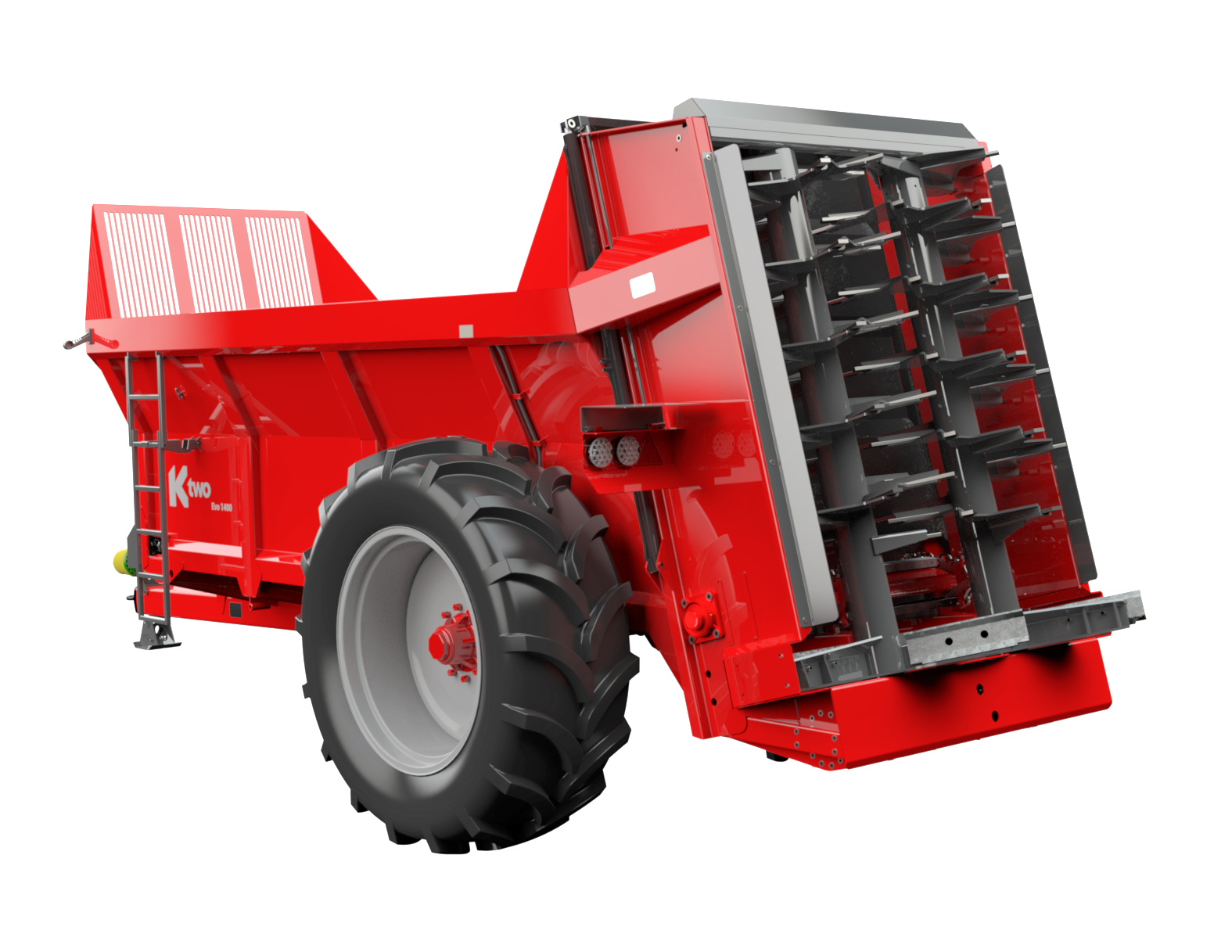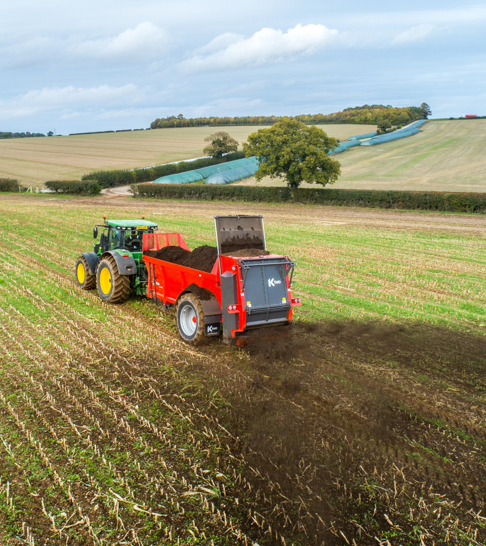 The K-Two duo is a range of heavy duty rear discharge muck spreaders, with two vertical beaters designed to shred and spread manure. Coming in a wide range of sizes from 6 to 14 ton these are designed for agricultural and industrial manures efficiently with a high throughput.